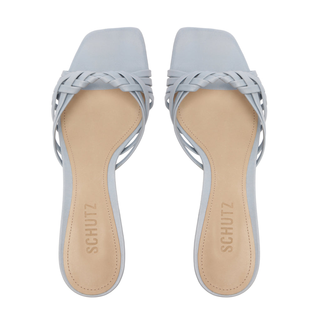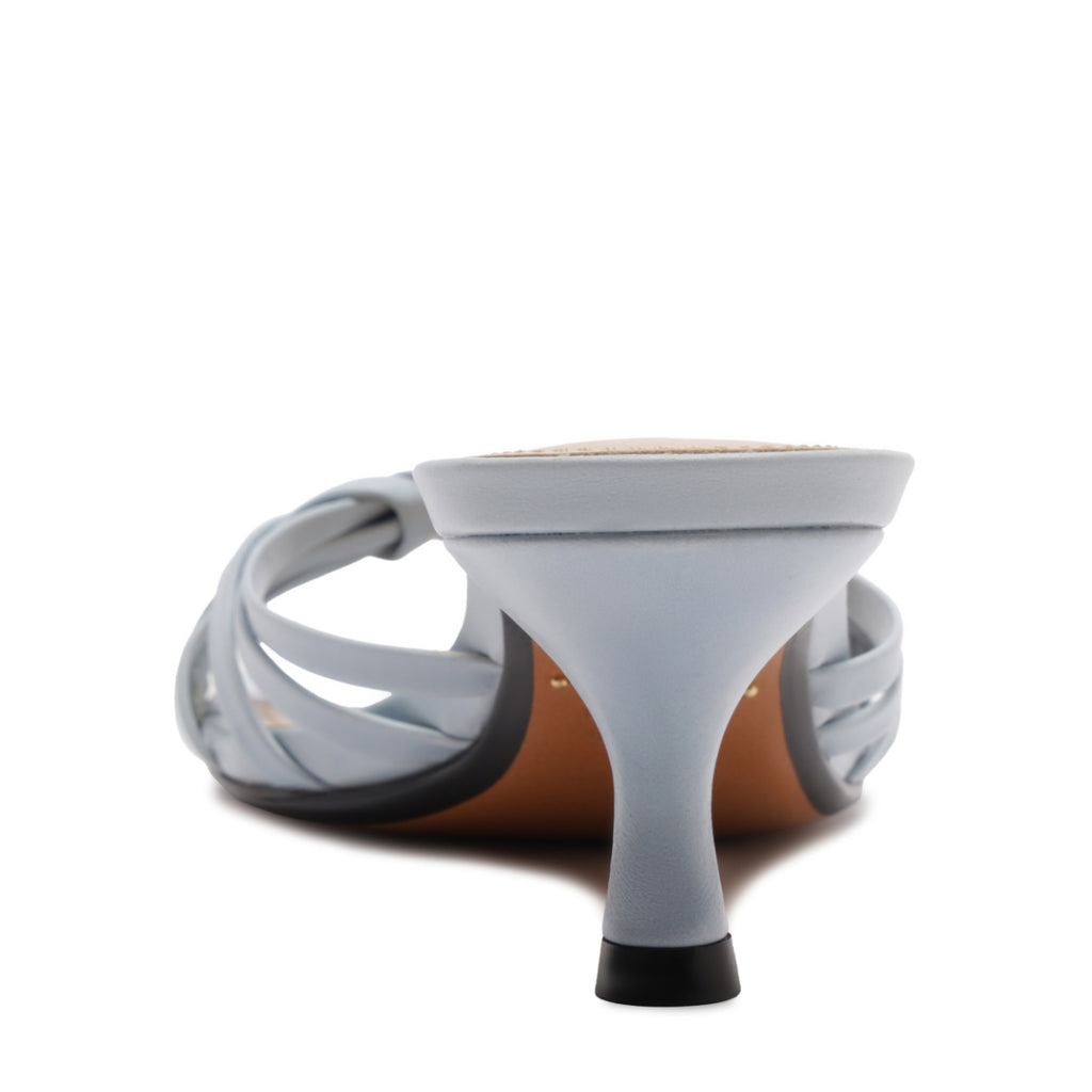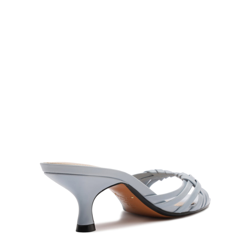 The Tara Mule Mid Leather Sandal in Light Azure blends breezy texture with modern ease. Designed with a handwoven upper and an effortless slip-on silhouette, it’s set on a relaxed mid heel that offers just the right lift for warm days and long nights. In a soft blue hue that pairs with everything, this mule brings a refined, textural edge to any look.