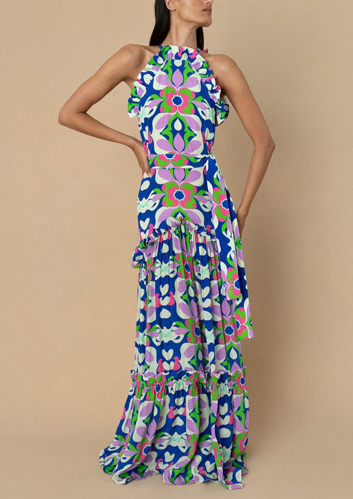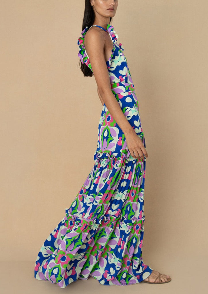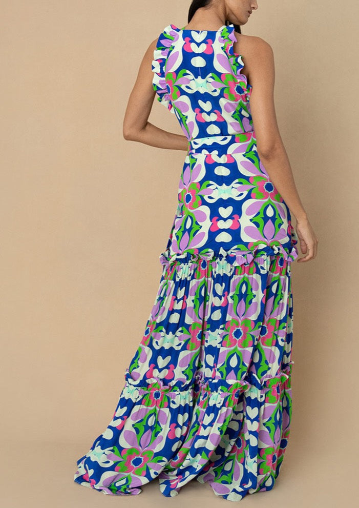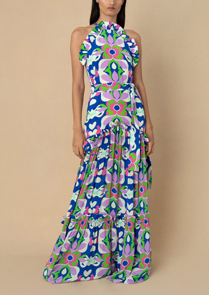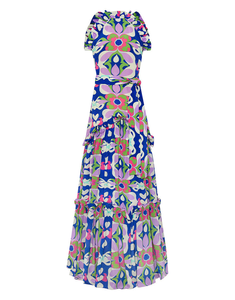 Inspired by the great art museums of the world, Carmen Borgonovo and Joana de Noronha use romantic silhouettes and surreal, bespoke prints, to create dresses that not only empower women but transport them. These versatile, tailored pieces will bring joy to your wardrobe and glamour to your world. Constructed in an inimitable silk and viscose blend, the Tatiana Crepe Maxi Dress will turn heads no matter where you take it. The multi-tiered skirt moves with you, while its delicately designed ruffles add texture to the slimming shape. In this gown, you’re not dressed, you’re in bloom.