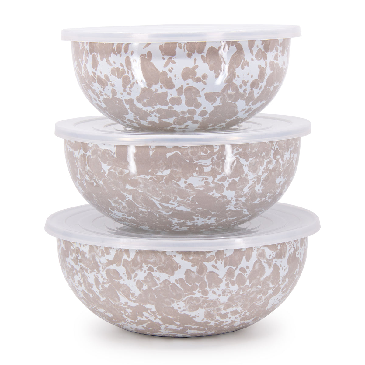Founder Peggy Hedgpeth created Golden Rabbit to make everyday entertaining feel effortless. With functionality, safety, and durability at the forefront, the brand’s distinctive designs—from traditional enamelware to kid-friendly sets—set it apart in kitchens and dining rooms the world over. Coated porcelain enamel and trimmed with stainless steel to prevent chipping, the Mixing Bowls in Taupe Swirl adds a dash of retro style and sophistication to your baking, storage, or service of everything from soups, to pastas, to salads.