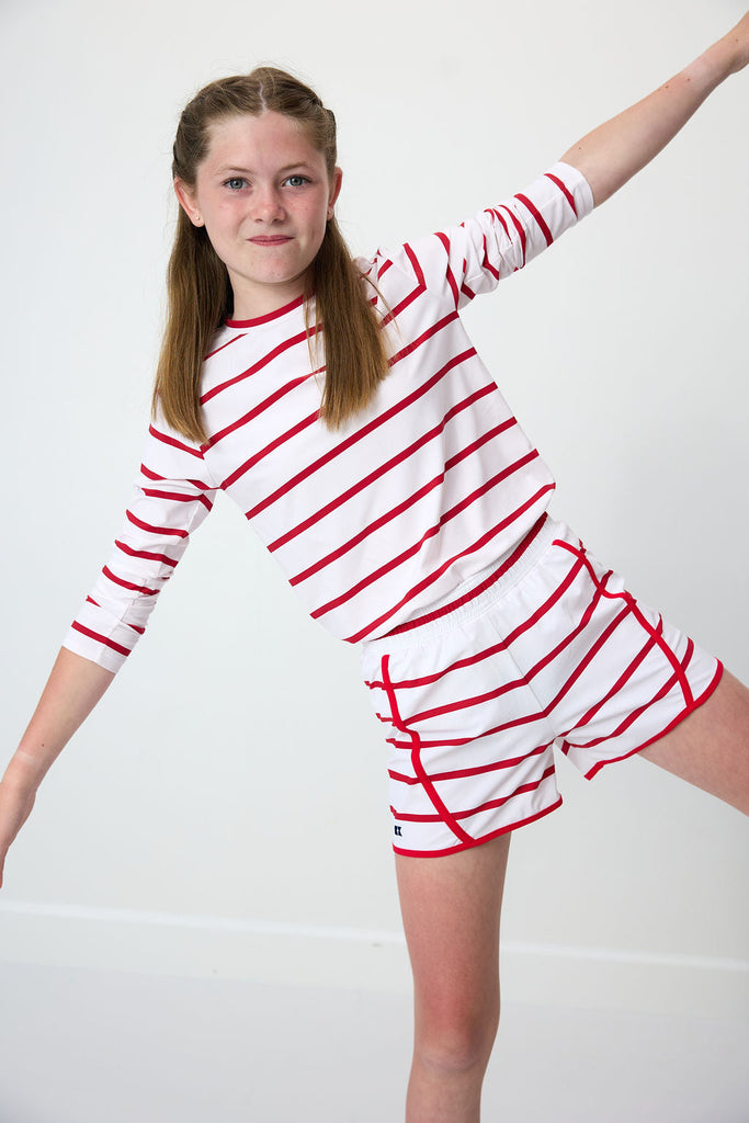 A polished blend of style and sport, Courtside Kids reimagines children’s activewear with performance fabrics, modern tailoring, and a classic athletic sensibility—made for everywhere from the playground to the country club. The Tennis Super Shorts in Red & White combine timeless design with high-performance function, giving young athletes the freedom to move with confidence. Crafted from an innovative stretch fabric with a breathable built-in liner, these shorts deliver flexibility, support, and comfort through every match, practice, and playful adventure.