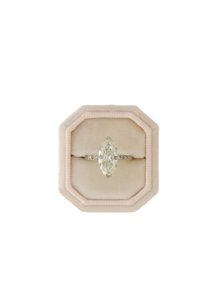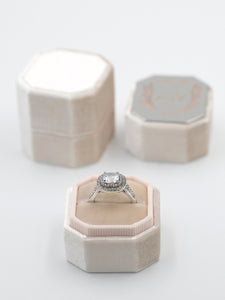 The Mrs. Box creates elegant, colorful, and limited edition velvet heirloom ring boxes. These vintage-inspired designs make wonderful engagement and wedding gifts, personalized with custom monograms. The Antonia Bevel Single is individually handmade using what the brand considers to be the world’s most extraordinary velvet. Featuring custom colors made exclusively for The Mrs. Box, these new boxes are so exquisite they truly sparkle in person, reflecting light in the most glorious way possible.