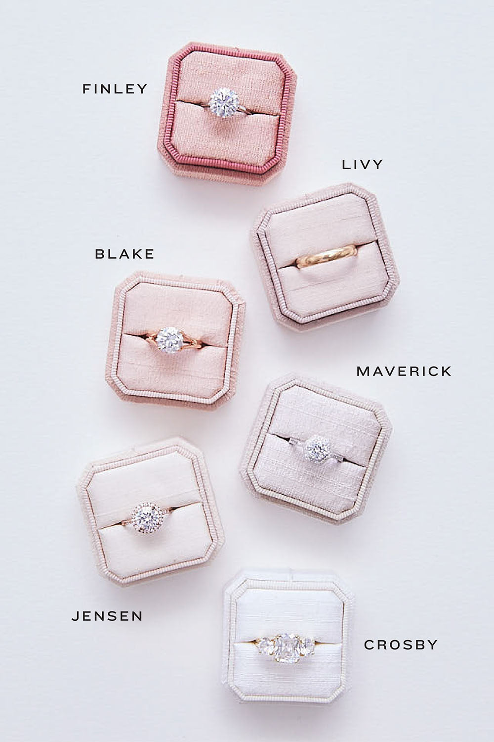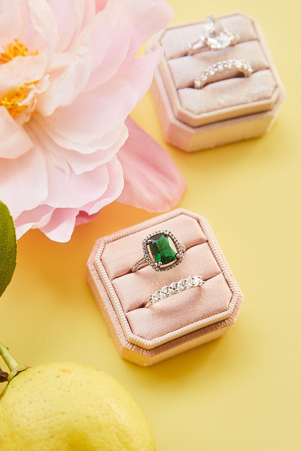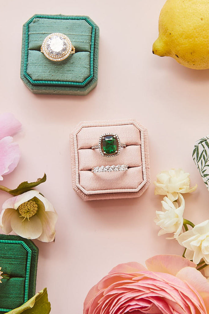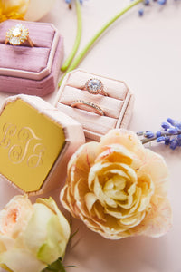 The Mrs. Box creates elegant, colorful, and limited edition velvet heirloom ring boxes. These vintage-inspired designs make wonderful engagement and wedding gifts, personalized with custom monograms. The Blake Noble Double is individually handmade using what the brand considers to be the world’s most extraordinary velvet. Featuring custom colors made exclusively for The Mrs. Box, these new boxes are so exquisite they truly sparkle in person, reflecting light in the most glorious way possible.
