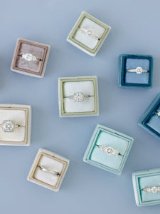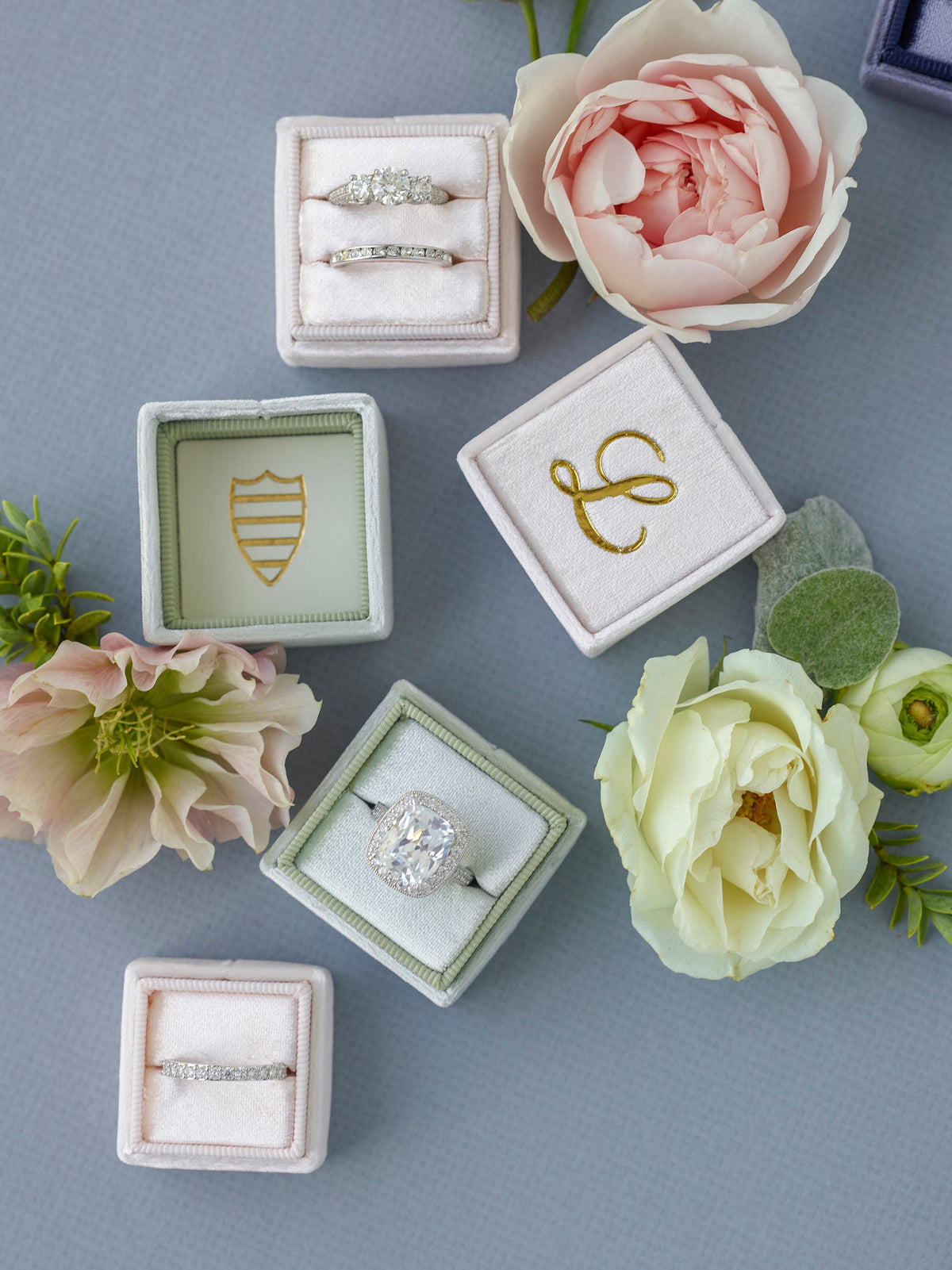 The Mrs. Box creates elegant, colorful, and limited edition velvet heirloom ring boxes. These vintage-inspired designs make wonderful engagement and wedding gifts, personalized with custom monograms. The Carlyle Classic Double is individually handmade using what the brand considers to be the world’s most extraordinary velvet. Featuring custom colors made exclusively for The Mrs. Box, these new boxes are so exquisite they truly sparkle in person, reflecting light in the most glorious way possible.