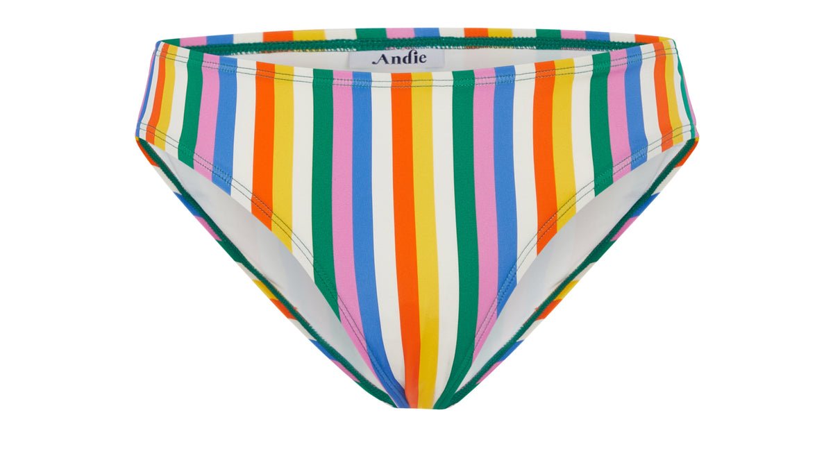 Andie Swim launched in 2017 with a core principle: make swimsuit shopping easier. Focused on materials, comfort, and sustainability, each of these pieces is designed to make you feel more amazing when you’re wearing less. Featuring classic bikini bottoms with rings on each hip for some extra flare, The Classic Bikini Bottom in Rainbow Stripe lets you embrace beach vibes with their low rise, full seat coverage, and medium leg cut.