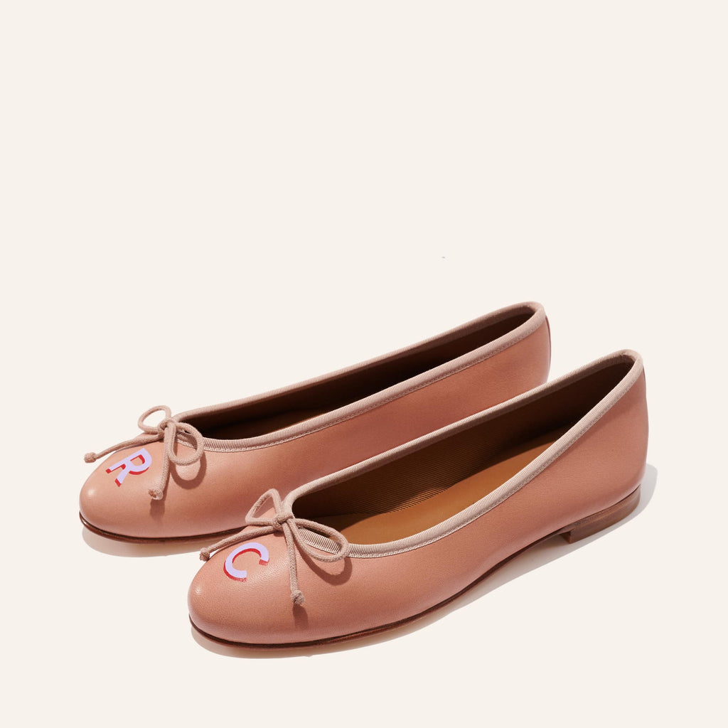 Italian Nappa leather. Upper, grosgrain trim, and adjustable cord bow. 5 mm of plush foam padding. Handmade in Spain.