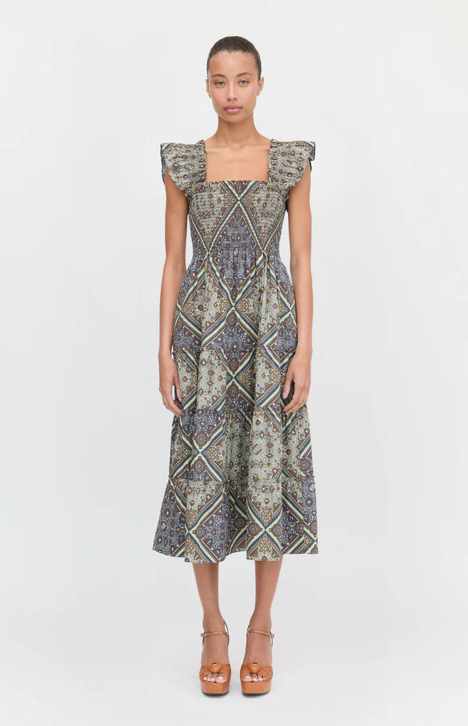 Hill House Home is a fashion and lifestyle brand that brings beauty and joy to everyday rituals. With a design-centric approach, Hill House offers impeccable quality, and timeless, delicate styles through quality products designed to enhance and celebrate life. The Ellie Nap Dress® in Olive Equestrian Scarf is the brand’s signature silhouette: soft, comfortable, and endlessly versatile. Designed with elasticated Nap Smocking, ruffled shoulders, a tiered midi skirt, and pockets, it’s a true wear-everywhere style made to move effortlessly from day to night.