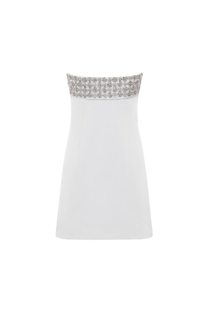Born in India and raised in New York, where she eventually worked in finance, Natasha Das’s diverse background is at the essence of Danarys New York, a luxury womenswear label that asks its wearer to embrace their strength and fearlessness of their femininity. The Ness Mini Dress features intricate hand-embroidered threadwork, crystals, and pearls in a floral motif, adding a touch of elegance and sophistication to your look.
