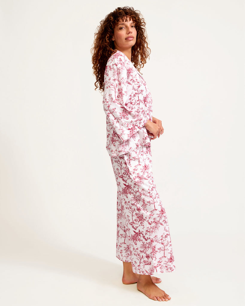 Petite Plume wishes you a “bonne nuit,” and in their luxury sleepwear, it’s hard not to oblige. Just miles from Versailles, an 18th-century textile printer made the world fall in love with toile. The Olivia Wide Leg Pima Pajama Set in Red Timeless Toile introduces a calming new shade to your nighttime ritual. Tailored with feminine ease, this design features three-quarter length sleeves and a more generous pant leg that creates a refined swish-swish as you walk, combining comfort with elegance. Crafted from buttery soft Pima cotton in a serene print, it’s destined to become a sleepwear staple.