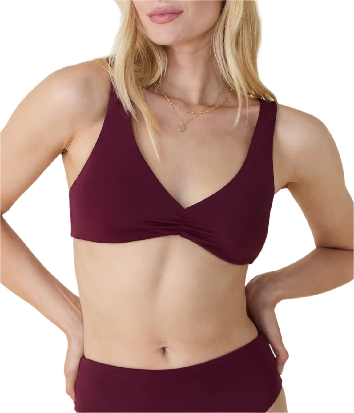 Andie Swim was launched in 2017 with a core principle: make swimsuit shopping easier. Focused on materials, comfort, and sustainability, each of these pieces is designed to make you feel more amazing when you’re wearing less. The Sicily Bikini Top in Brandy features a flattering V-neckline and wider, adjustable shoulder straps for supportive style and a clean silhouette.