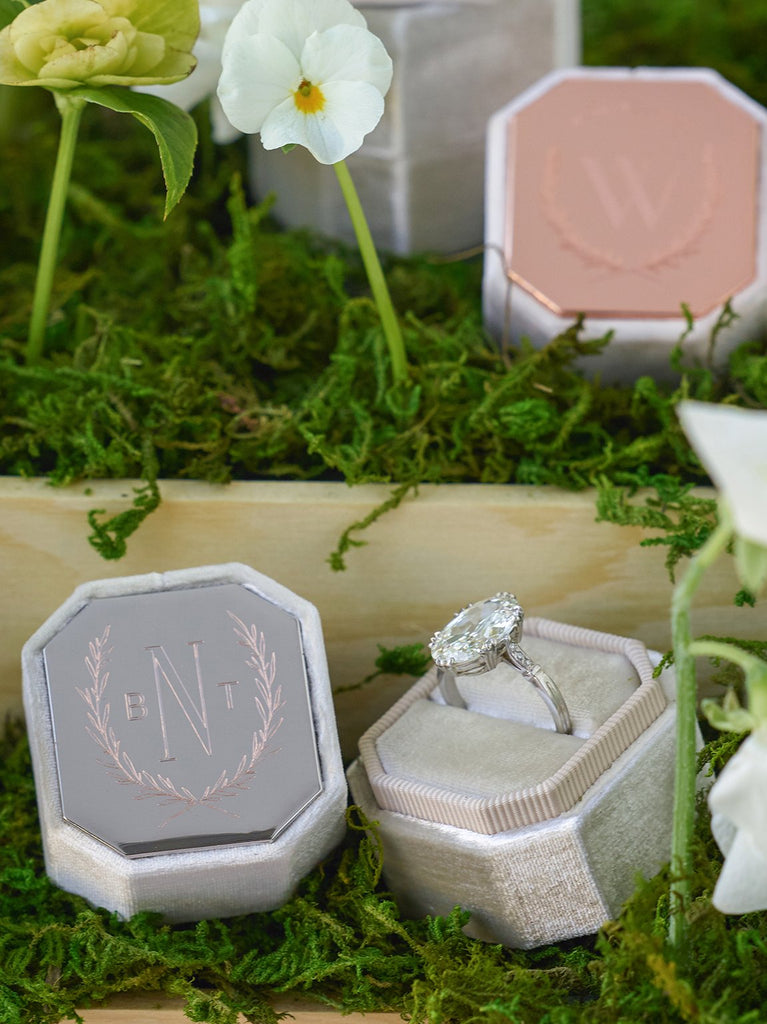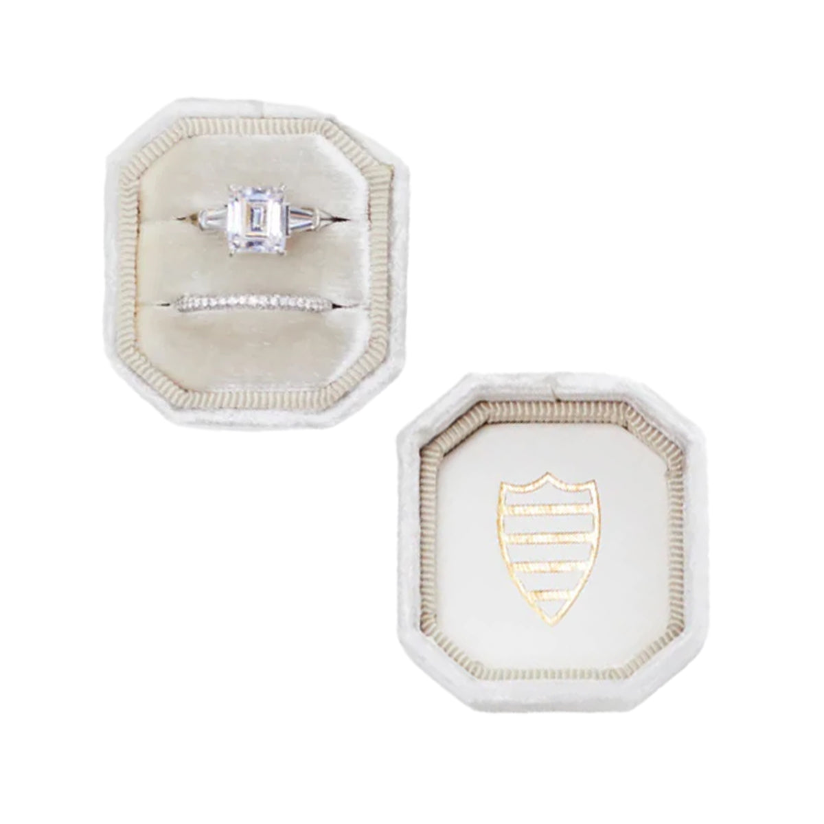 The Mrs. Box creates elegant, colorful, and limited edition velvet heirloom ring boxes. These vintage-inspired designs make wonderful engagement and wedding gifts, personalized with custom monograms. The Stella Bevel Double is individually handmade using what the brand considers to be the world’s most extraordinary velvet. Featuring custom colors made exclusively for The Mrs. Box, these new boxes are so exquisite they truly sparkle in person, reflecting light in the most glorious way possible.