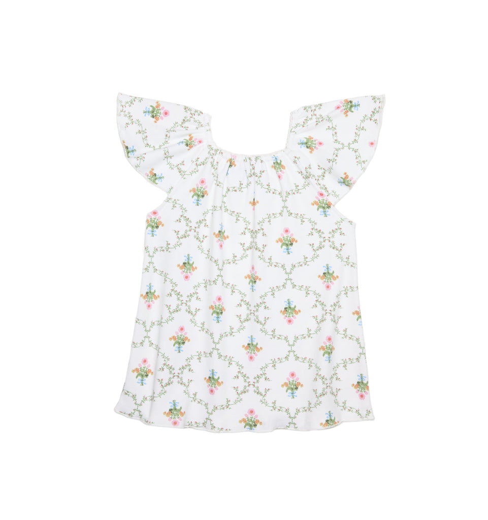 The Tiny Keira Dress in Pastel Trellis combines easy comfort with charming detail. Crafted from soft cotton, this sweet silhouette mirrors the beloved Nap Dress with its ruffled sleeves, smocked bodice, and breezy skirt. Thoughtfully designed for everyday wear, it moves effortlessly from playdates to nap time.