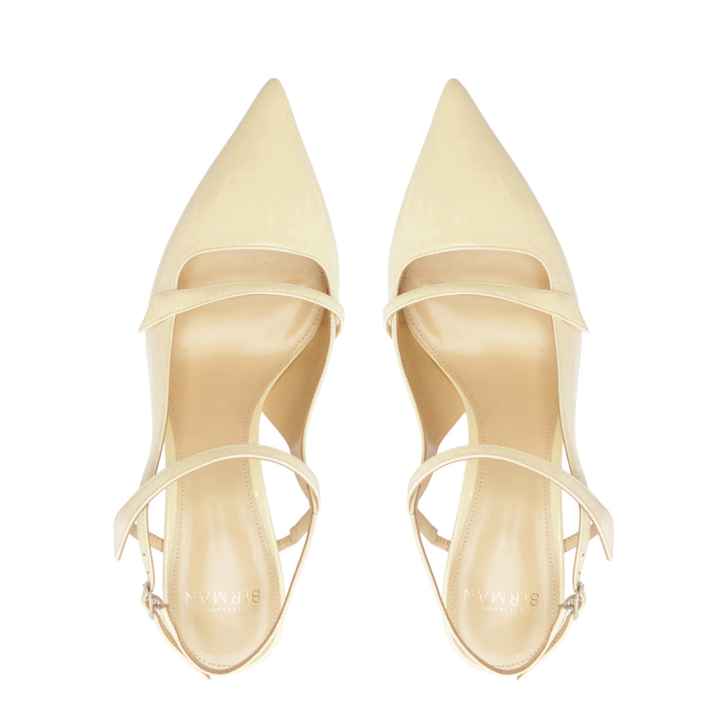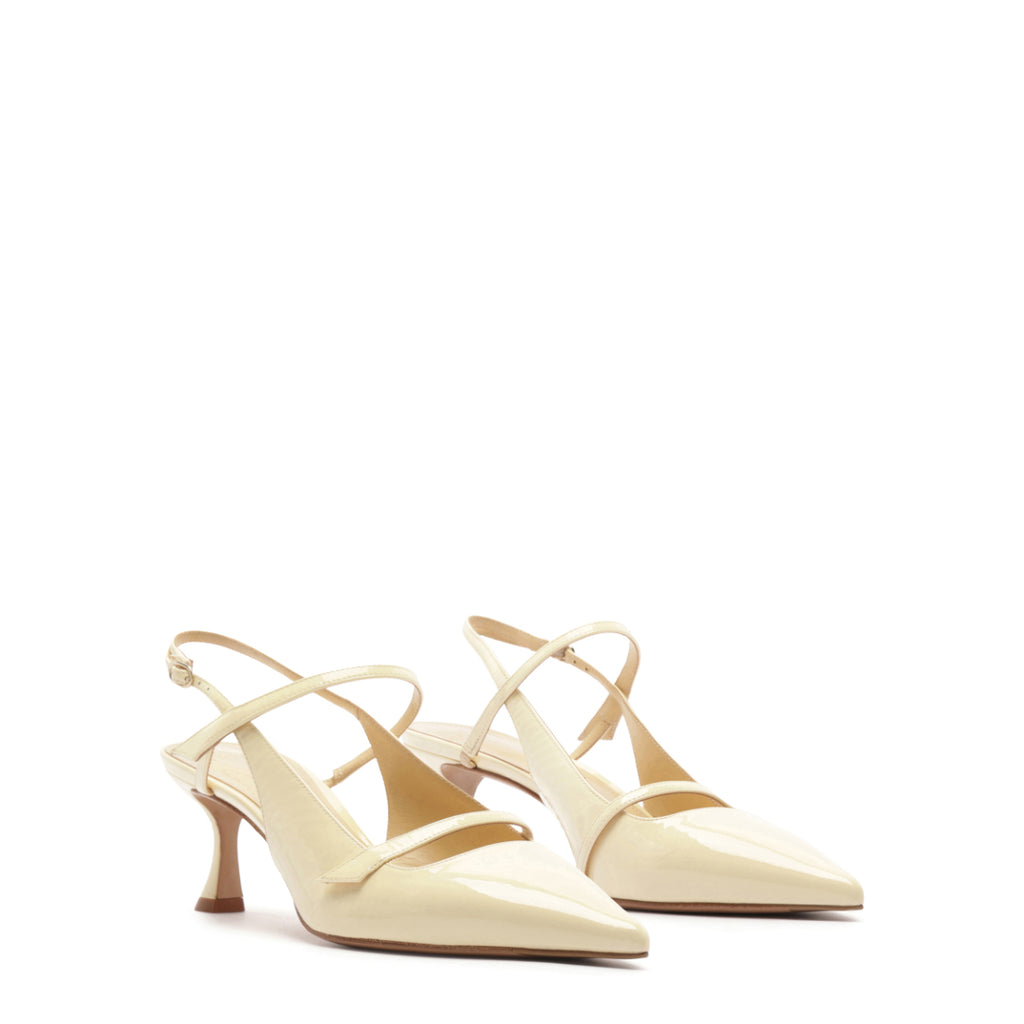 Founded in 2008, Alexandre Birman infuses each of his fine footwear collections with the spirit, sensuality, and sophistication of his Brazilian heritage. Beginning with thoughtful drawings, exceptional craftsmanship is the brand’s cornerstone, employing fine artisans, superior materials, and thoughtful design to create timeless, luxurious shoes, style after style. The Tita 60 Slingback in Creamy reimagines the brand’s signature elegance through a sculptural lens, combining the refined structure of the Clarita sandal with the allure of a pointed-toe pump. Leather strings trace and envelop the foot with sculpted precision, creating a silhouette that is both graceful and modern.