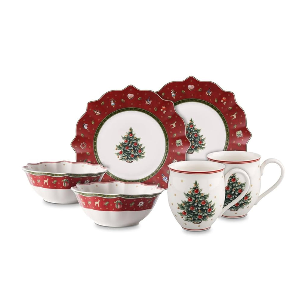 With over 275 years of heritage, this family-owned brand has become a global symbol of refined European living. Blending time-honored craftsmanship with forward-thinking design, Villeroy & Boch elevates everyday moments with beauty, quality, and enduring style. The Toys Delight Breakfast for 2 Red in Multi, Set of 6 brings bold holiday cheer to festive mornings. Featuring rich red porcelain decorated with nostalgic Christmas illustrations, this six-piece set includes plates, mugs, and bowls for a joyful and coordinated tabletop.
