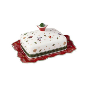 With over 275 years of heritage, this family-owned brand has become a global symbol of refined European living. Blending time-honored craftsmanship with forward-thinking design, Villeroy & Boch elevates everyday moments with beauty, quality, and enduring style. The Toys Delight Covered Butter Dish in Multi brings festive elegance to the holiday table. Featuring nostalgic seasonal illustrations and a scalloped lid, this porcelain piece keeps butter fresh while adding charm to breakfasts, brunches, and celebratory spreads.