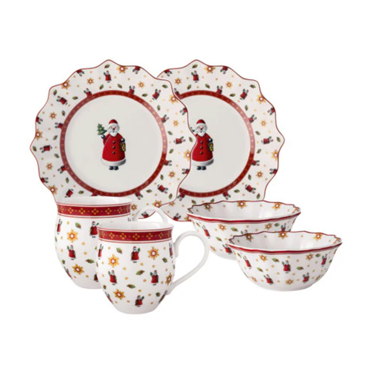 With over 275 years of heritage, this family-owned brand has become a global symbol of refined European living. Blending time-honored craftsmanship with forward-thinking design, Villeroy & Boch elevates everyday moments with beauty, quality, and enduring style. The Toys Delight Breakfast Set for 2 in the Santa motif infuses mornings with festive joy. Featuring a cheerful Santa Claus illustration and decorative holiday accents, this six-piece porcelain set includes salad plates, mugs, and bowls for a delightful seasonal tabletop.