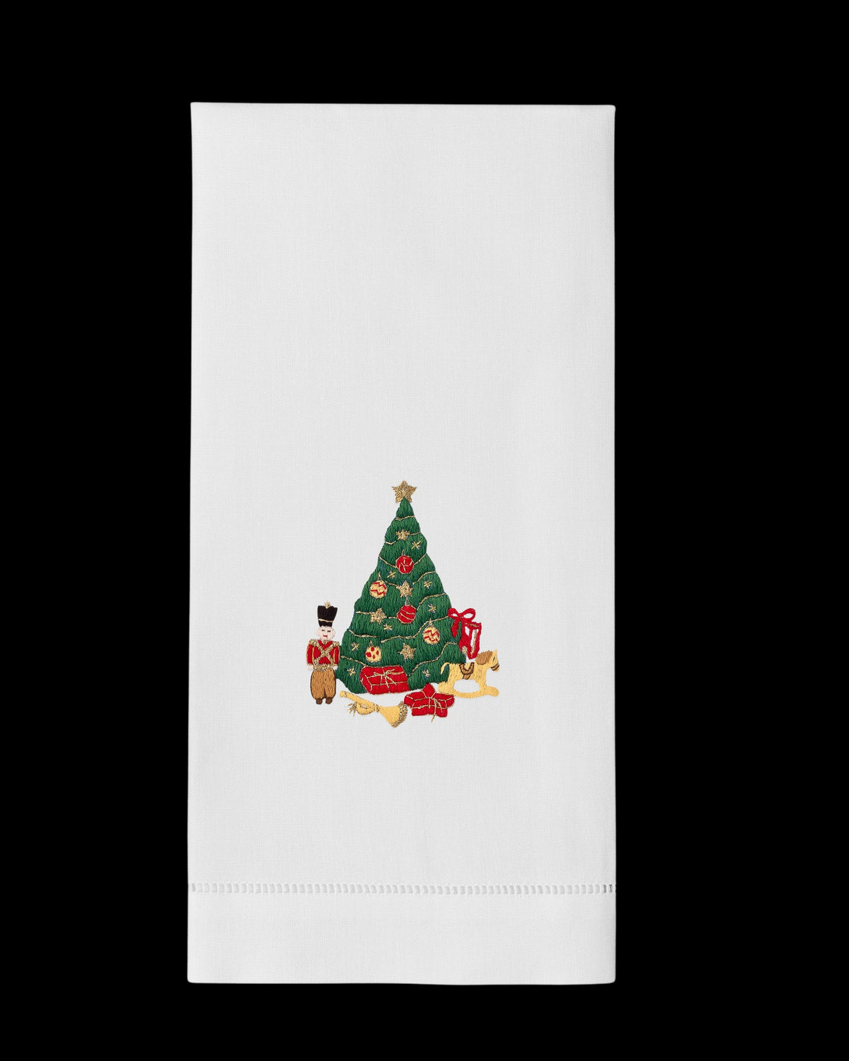Founded in 2012, Henry Handwork brings joy to the everyday with handmade textiles for the home. Placing tradition and quality at the forefront, the brand resurrects the fading craft of hand-embroidery and needlework, embracing the heritage of finely-wrought European linens. The Toys & Tree Hand Towel is a white, hand-embroidered piece that is finished and hemstitched by hand, and will add a touch of holiday charm to any home.