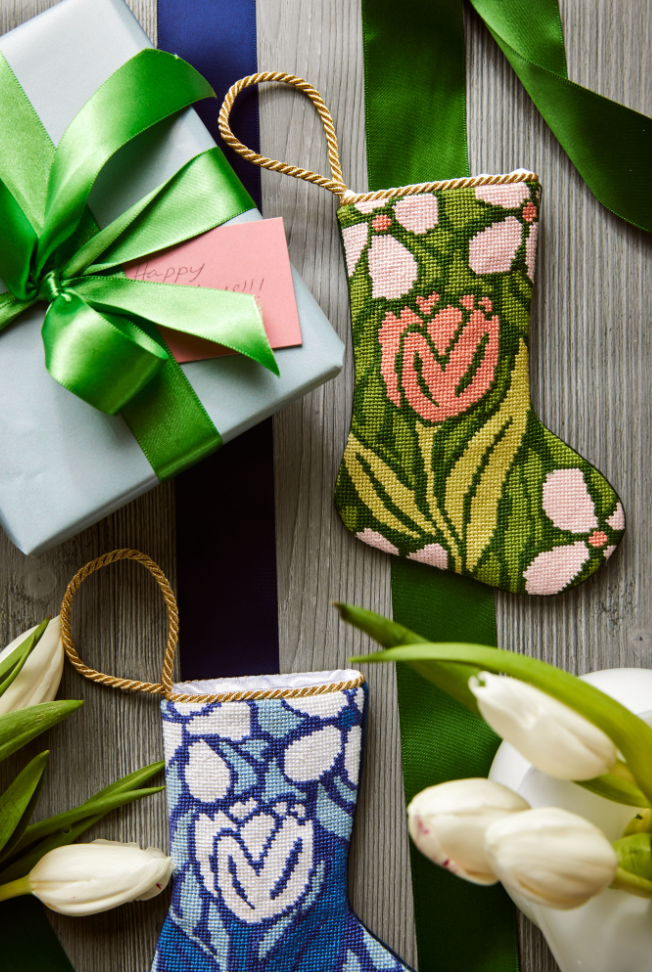 The bloom that brightens the winter season, the Triumphant Tulip in Pink Bauble Stocking brings a burst of springtime joy to holiday décor. Hand-stitched with bold floral flair, it celebrates resilience and beauty—an uplifting keepsake for cheerful decorators and collectors who love their traditions in full bloom.