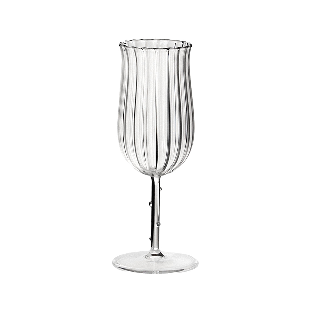 From her studio in New York City, French-American designer Sophie Lou Jacobsen explores the relationship between humans and objects by imbuing each of her unique glass pieces with elements of surprise and delight, creating a visual poetry around the rituals of our everyday. Taking cues from the simple bistro glass, the Tulip Wine Glass works with any color wine, gently expanding at the brim to facilitate the release of aromas.