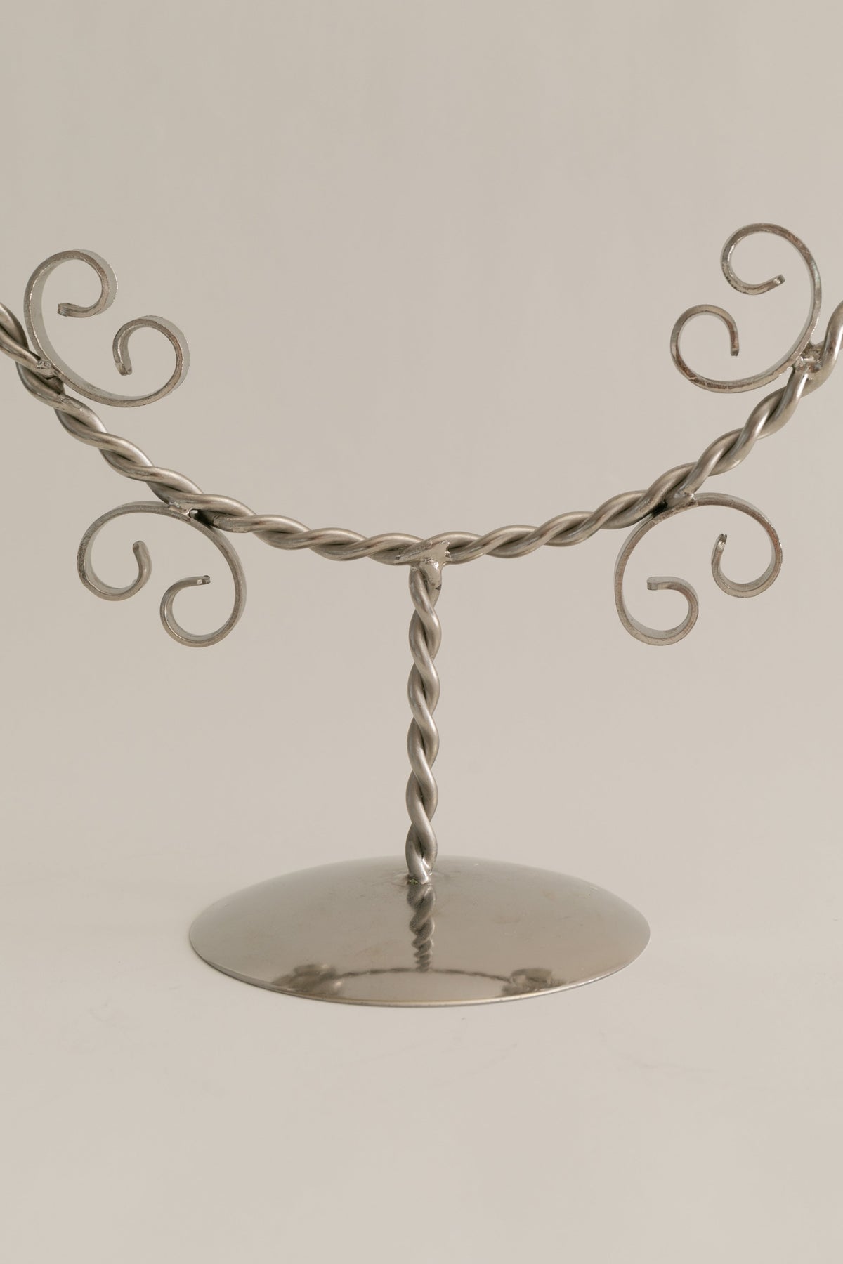 From her studio in New York City, French-American designer Sophie Lou Jacobsen explores the relationship between humans and objects by imbuing each of her unique glass pieces with elements of surprise and delight, creating a visual poetry around the rituals of our everyday. A stainless steel, double arm candelabra that has been twisted and plated in nickel, the Twist Candleholder’s delicate distortions are substantial enough to make a proud statement, all the while remaining discreet.
