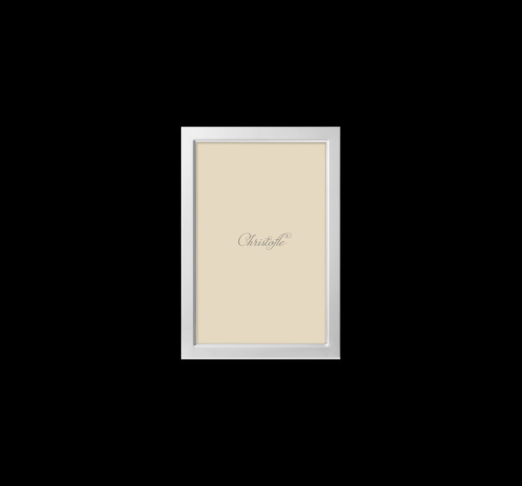Silver-plated. Holds a 4" × 6" image. Designed to display vertically or horizontally. Black lacquered wooden back lined with felt. Comes in a Christofle gift box.