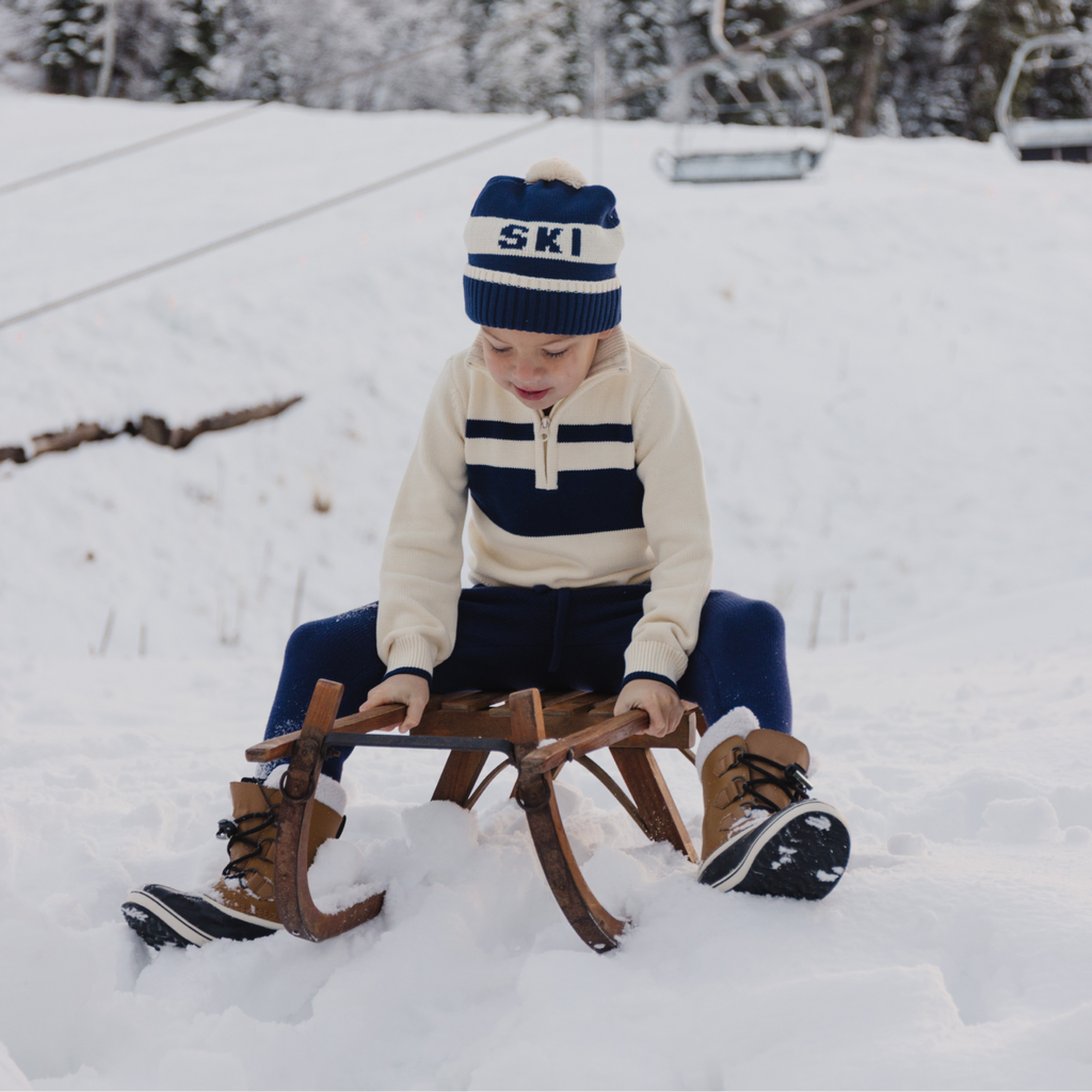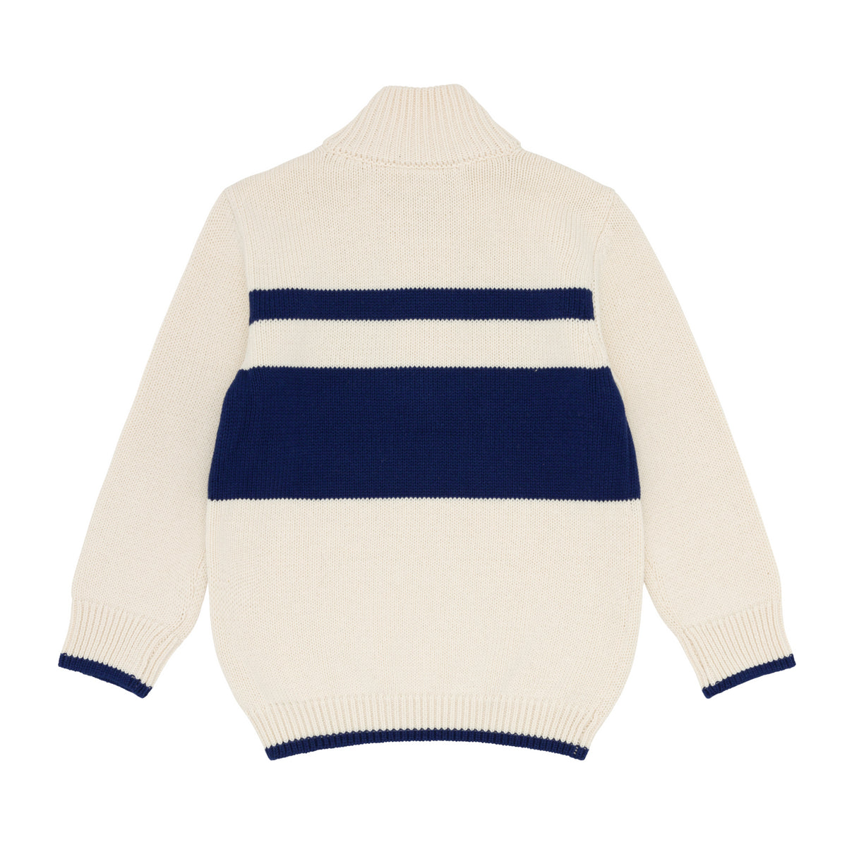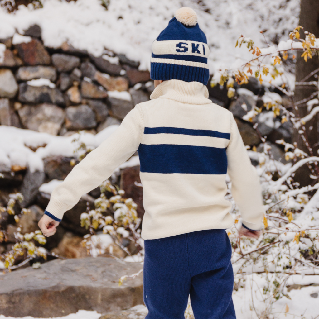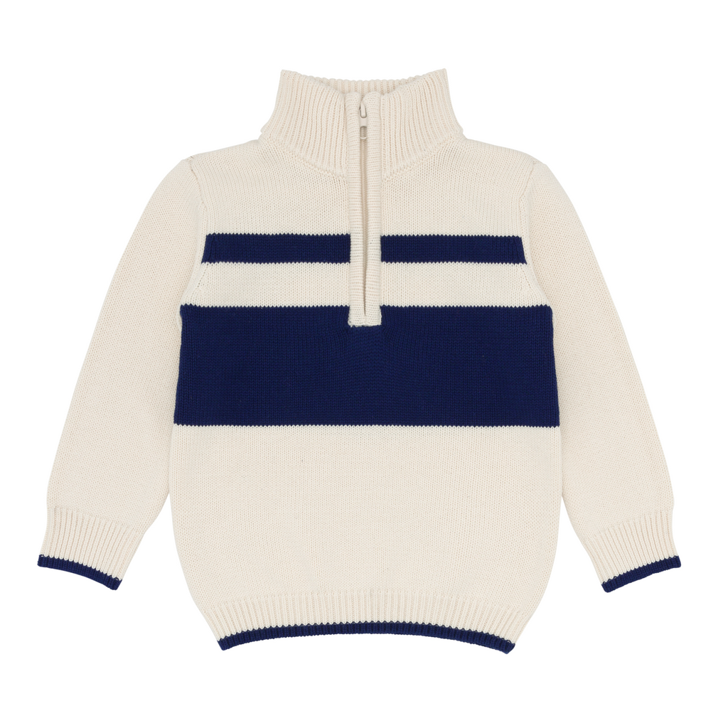 A family favorite for its clean lines and simple details, minnow creates pieces that are playful, polished, and thoughtfully designed for long days, sandy toes, and the wonderment of life on the shore. Crafted from natural cotton—for its breathability and absorbency—the cozy and ultra-soft luxury knit Unisex Cream Half Zip Sweater is the ideal warm layer for après swim. Pair it with the coordinating knit pants for a sweet lounge set.