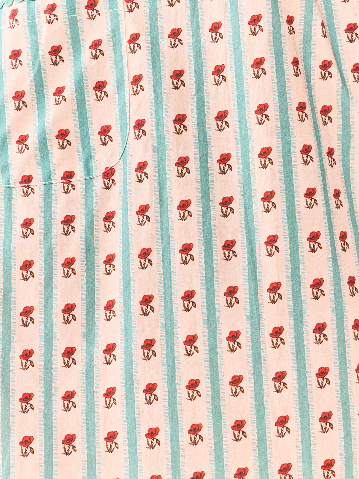 Tomboy looks, girly-girl styles, and an always fashionable approach define EDDY’s aesthetic. With a focus on bold and feminine silhouettes, EDDY dresses and tops pair elevated California bohemian with global inspiration; these are clothes designed to make you feel good inside and out. Meet the Vanessa Mini Dress in Poppy Fields Floral—a swingy little mini that doesn’t take itself too seriously. Crafted from airy cotton with vintage-inspired stripes and ditsy florals, and trimmed in teal scalloped ribbon. Oversized shoulder rosettes double as adjustable ties, adding a wink of charm. Finished with side patch pockets for a touch of practicality. Effortless, easy, and made for sunny days.
