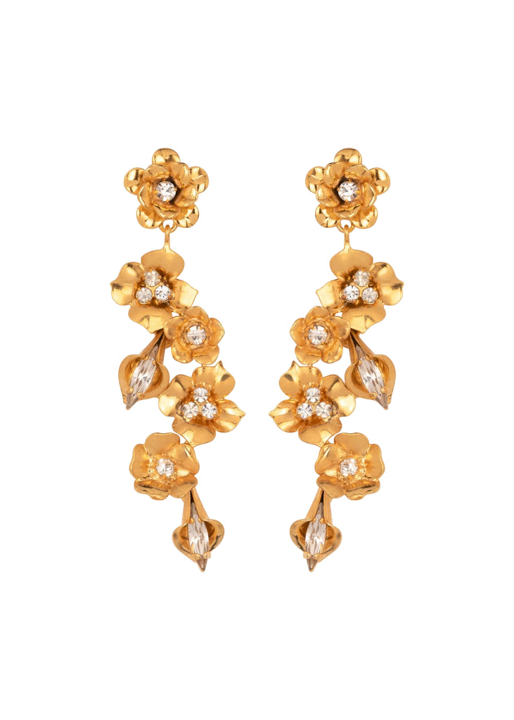 18K gold-plated brass. Austrian crystals in custom floral cuts. Lightweight design for comfort. Handmade in New York City.