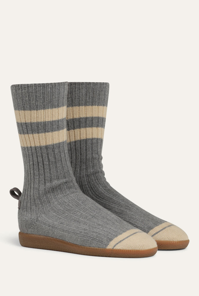 Named after East Hampton’s Pudding Hill Lane and its Revolutionary War legend, Brave Pudding honors the spirit of bold defiance. Each design reflects a modern expression of bravery—shoes that speak to where we are now and where we’re headed. A reimagining of a classic, the Varsity Strolls in Athletic Heather is a nod to old-school trainers, modernized. Inspired by vintage locker room stripes and the collegiate energy of retro gym class, it looks like a sock, but performs like a shoe.