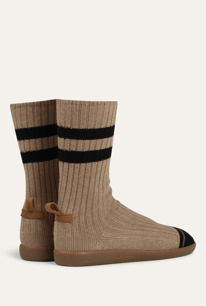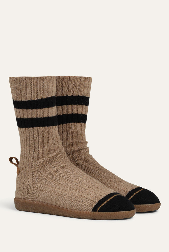 Named after East Hampton’s Pudding Hill Lane and its Revolutionary War legend, Brave Pudding honors the spirit of bold defiance. Each design reflects a modern expression of bravery—shoes that speak to where we are now and where we’re headed. A reimagining of a classic, the Varsity Strolls in Coffee Court is a nod to old-school trainers, modernized. Inspired by vintage locker room stripes and the collegiate energy of retro gym class, it looks like a sock, but performs like a shoe.