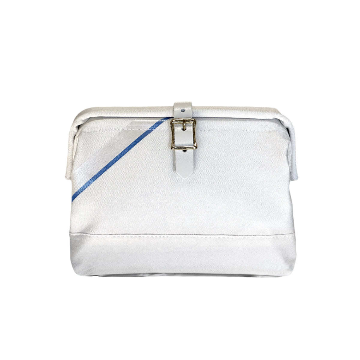 Bridesmaid Kit includes: Crane Sewing Scissors, Stain Remover Wipe, Red Wine Remover Wipe, Professional double-sided tape. Black & White Safety Pins. Tulle Fabric. Ivory Satin Ribbon: Use on hair, belt, or flower tie. Sewing Kit: needles, button, threader, thread, and safety pins. Lint Roller. Clear Earring Backs. Evian Facial Spray. Tweezers. Bobby Pins. Hair Ties. Manicure Kit. Nail Polish Remover. Emery Board Nail File. Makeup Hood. Makeup Remover Wipes. Biodegradable Drinking Straw. Deodorant Body Wipe. Peppermint Breath Mints. Biodegradable Floss Picks. Facial Tissues. Magnesium Shot. Vitamin C Shot. Ibuprofen. Mini First-Aid Kit. Alcohol Prep Pad. Organic Cotton Tampons. Made in the USA.