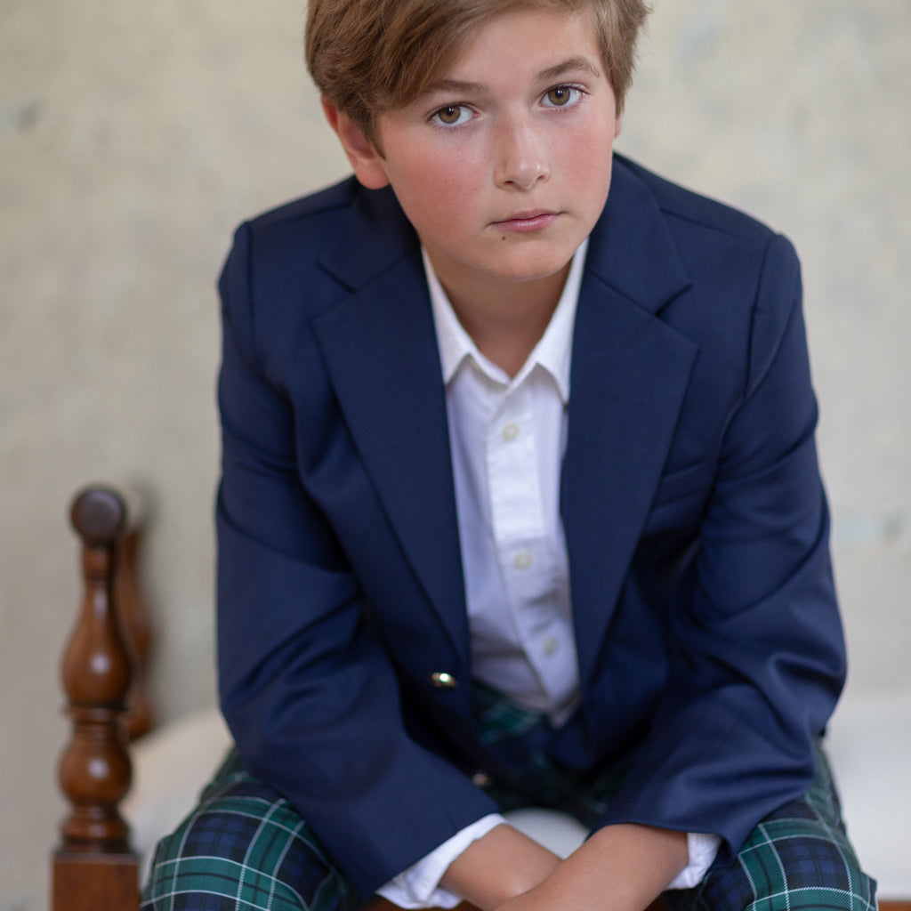 A celebration of the spirit of boyhood, the updated classics from Henry Duvall are curious, imaginative, and sweet. Full of character and playful details, these are easy-to-care-for clothes that families will love. The Wentworth Blazer in Classic Navy is a timeless essential designed for every special occasion. Tailored in a polished silhouette and finished with the brand’s signature gold Henry Duvall buttons, it brings effortless sophistication to any look. From holiday gatherings to school events and family portraits, this versatile layer elevates everything it’s paired with—an heirloom-worthy piece that never goes out of style.