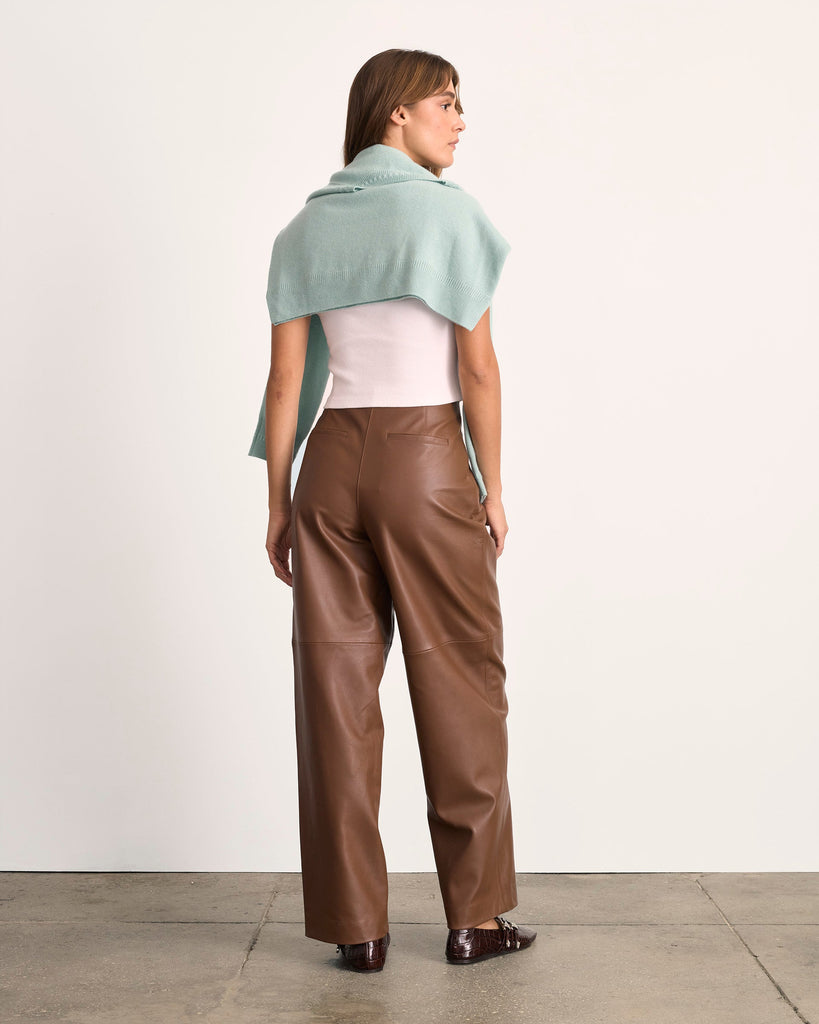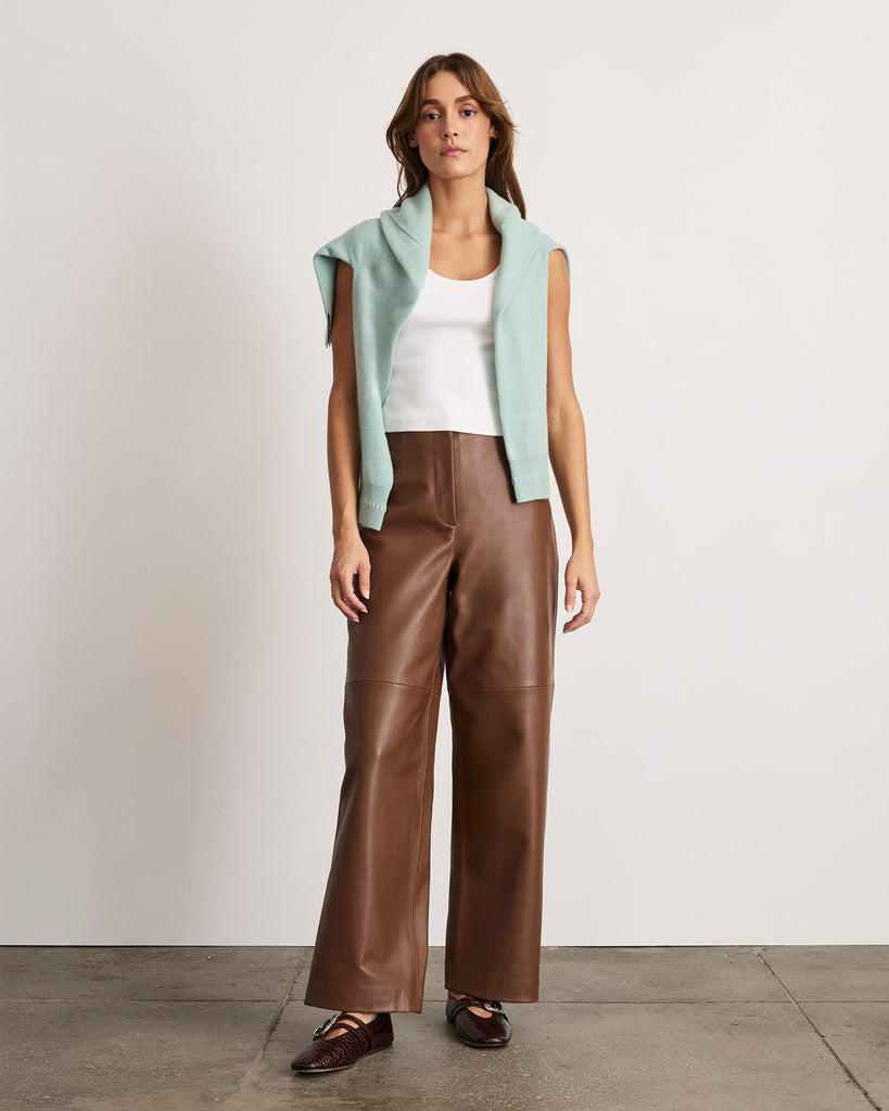The Weston Pant in Acorn offers a refined take on everyday dressing with a sleek, modern edge. Crafted from supple leather, this high-waisted silhouette features corset-inspired seaming at the waist and front pockets for a structured yet effortless fit. Designed to bring polish and confidence to any look, Weston is an instant wardrobe staple that transitions seamlessly from day to night.