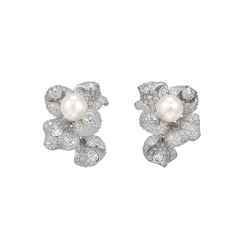 London-based Anabela Chan’s background in architecture and luxury fashion led to the first fine jewelry line to champion laboratory-grown gemstones. Today, its artisanal craftsmanship and sustainable innovations have found a place in the collections of royals, Rihanna, Taylor Swift, and sophisticated women worldwide. The White Blossom Pearl Earrings are a subtle statement and a true testament to the difference expert craftsmanship makes. A freshwater pink-lustre pearl at the center of each stud is beautifully surrounded in 368 laboratory-grown simulated white diamonds on 14K gold posts with a total weight of over 32 carats. Of note is the 360 degrees technique with with the stones are set around the flower, giving a dramatic effect that can be appreciated from all angles.