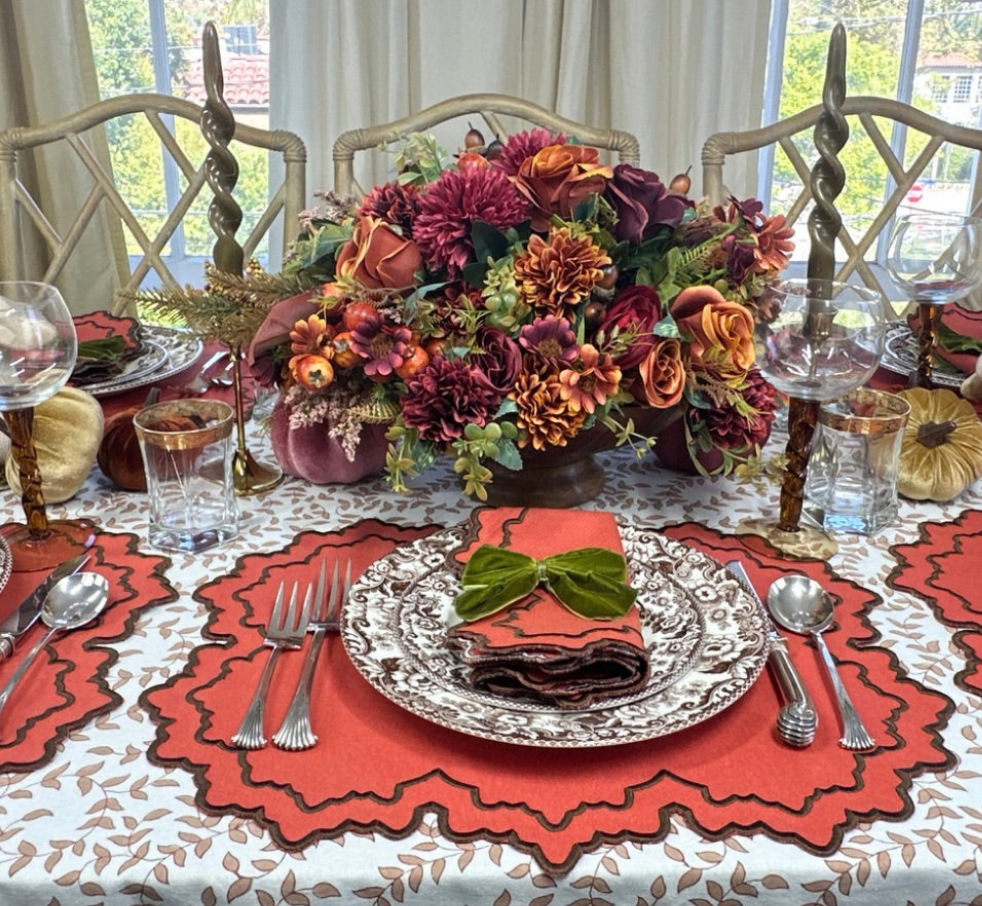 Swiss linen, fine cotton and tasteful refinement define Flying Sheep Country’s linens and tabletop items. Founded by two sisters who spent their youth spotting sheep in the English countryside, the brand celebrates both luxury and whimsy in its vibrant prints, fine embroidery and traditional artisanship. The Whitley Napkin in Pumpkin & Cocoa, Set of 4, brings effortless elegance to the table with warm pumpkin cotton framed by rich cocoa brown embroidery. Thoughtfully designed to complement both casual and formal settings, these napkins add refined texture and seasonal warmth.