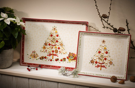 With over 275 years of heritage, this family-owned brand has become a global symbol of refined European living. Blending time-honored craftsmanship with forward-thinking design, Villeroy & Boch elevates everyday moments with beauty, quality, and enduring style. The Winter Bakery Delight Small Rectangular Cake Platter in Multi is decorated with heartwarming holiday scenes and a scalloped red border. Ideal for serving cakes, pastries, or hors d’oeuvres, this festive piece adds a cheerful touch to the holiday table.