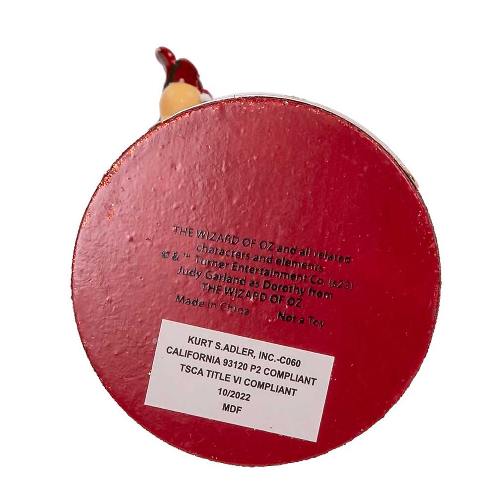 Wood. Official Wizard of Oz licensed design featuring glittered dress, ruby slippers, and flower basket. For decorative use only.