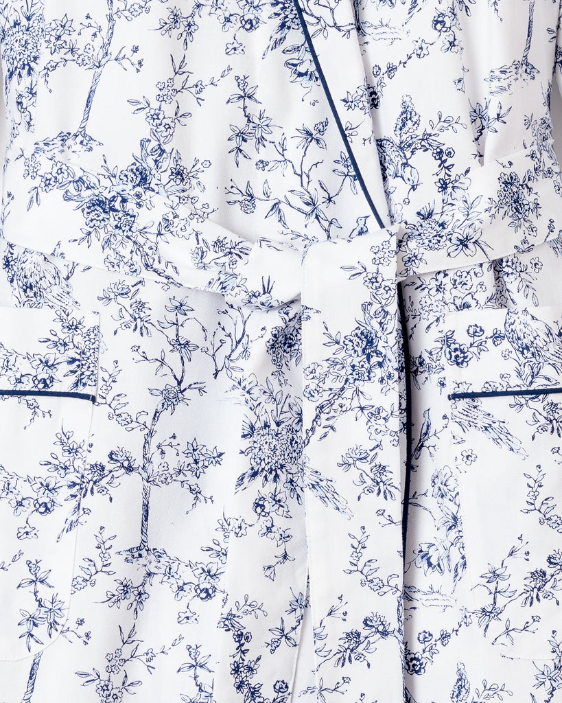 Petite Plume wishes you a “bonne nuit,” and in their luxury sleepwear, it’s hard not to oblige. Crafted from the finest quality 100% cotton, and brushed for added softness, the Women’s Twill Robe in Timeless Toile is the embodiment of classic sleepwear at its finest. Constructed with stunning attention to detail, its hand-drawn botanical illustrations in classic blue and white are offset by crisp navy piping, giving an all over luxurious look and feel.