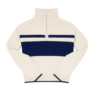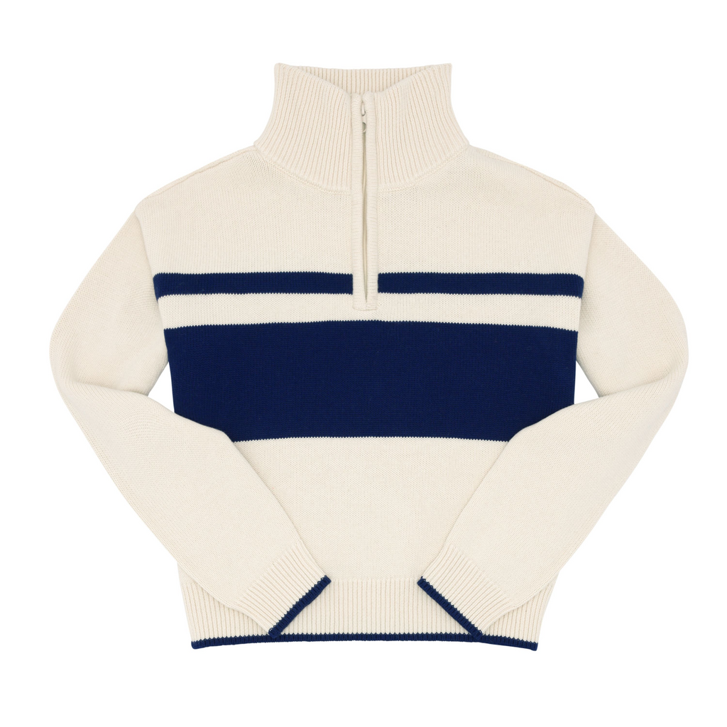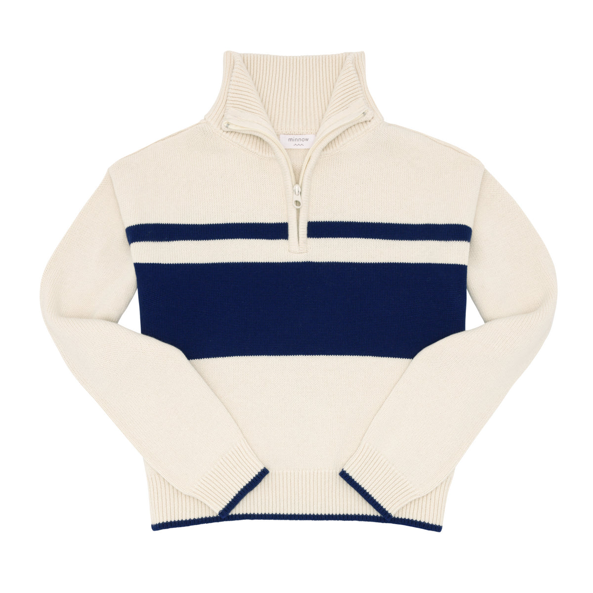 A family favorite for its clean lines and simple details, minnow creates pieces that are playful, polished, and thoughtfully designed for long days, sandy toes, and the wonderment of life on the shore. Crafted from natural cotton—for its breathability and absorbency—the cozy and ultra-soft luxury knit Women’s Cream Half Zip Sweater is the ideal warm layer for après swim. Pair it with the coordinating knit pants for a sweet lounge set.