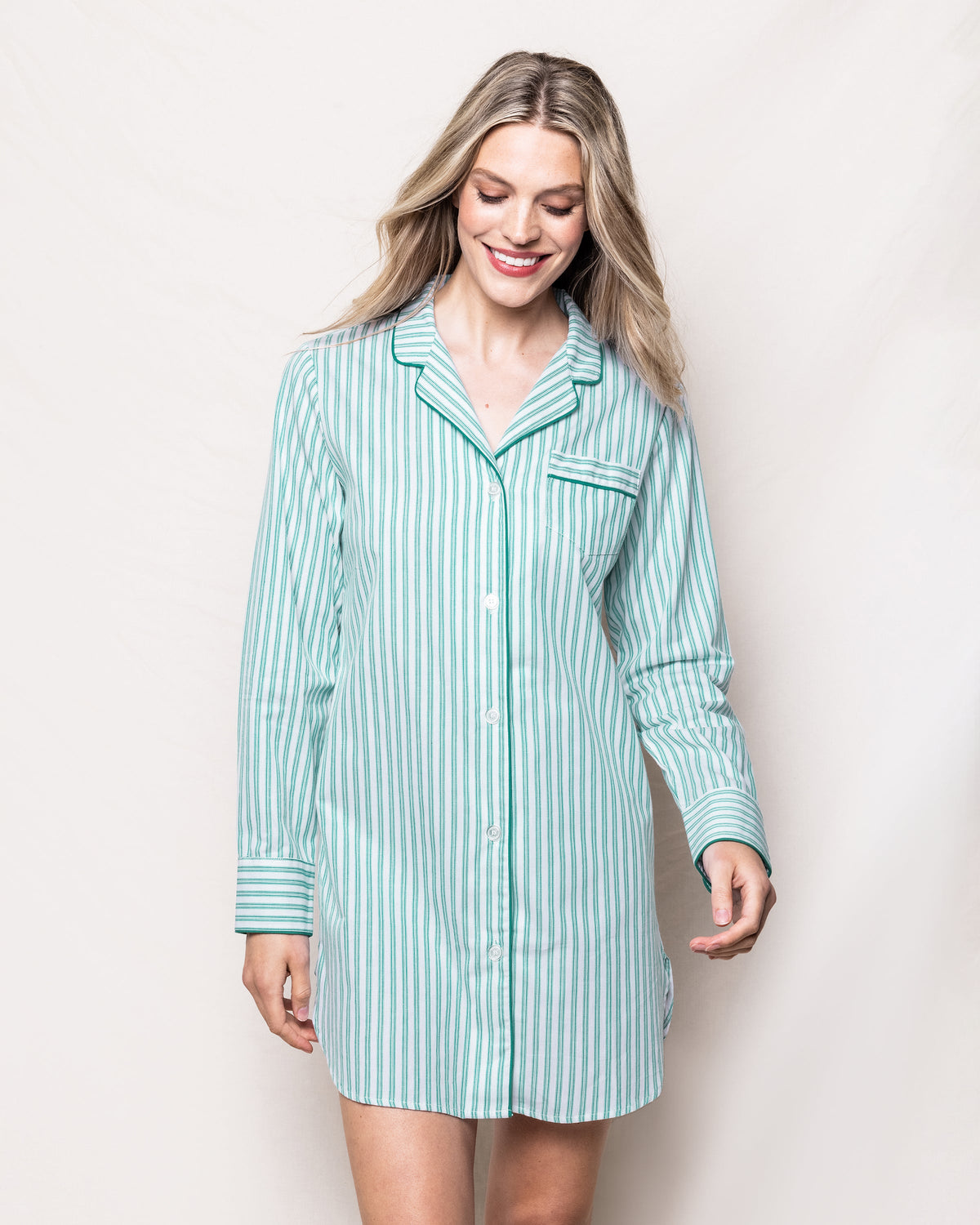 Petite Plume wishes you a “bonne nuit,” and in their luxury sleepwear, it’s hard not to oblige. Crafted in exquisite cotton, with the finest attention to detail, Petite Plume delivers the utmost comfort and sophistication. This classic French ticking pattern takes on a new seasonal hue in a lush, deep green that channels the color of evergreen trees. The versatility of this print allows seamless transition from bedtime to holiday festivities in a snap.