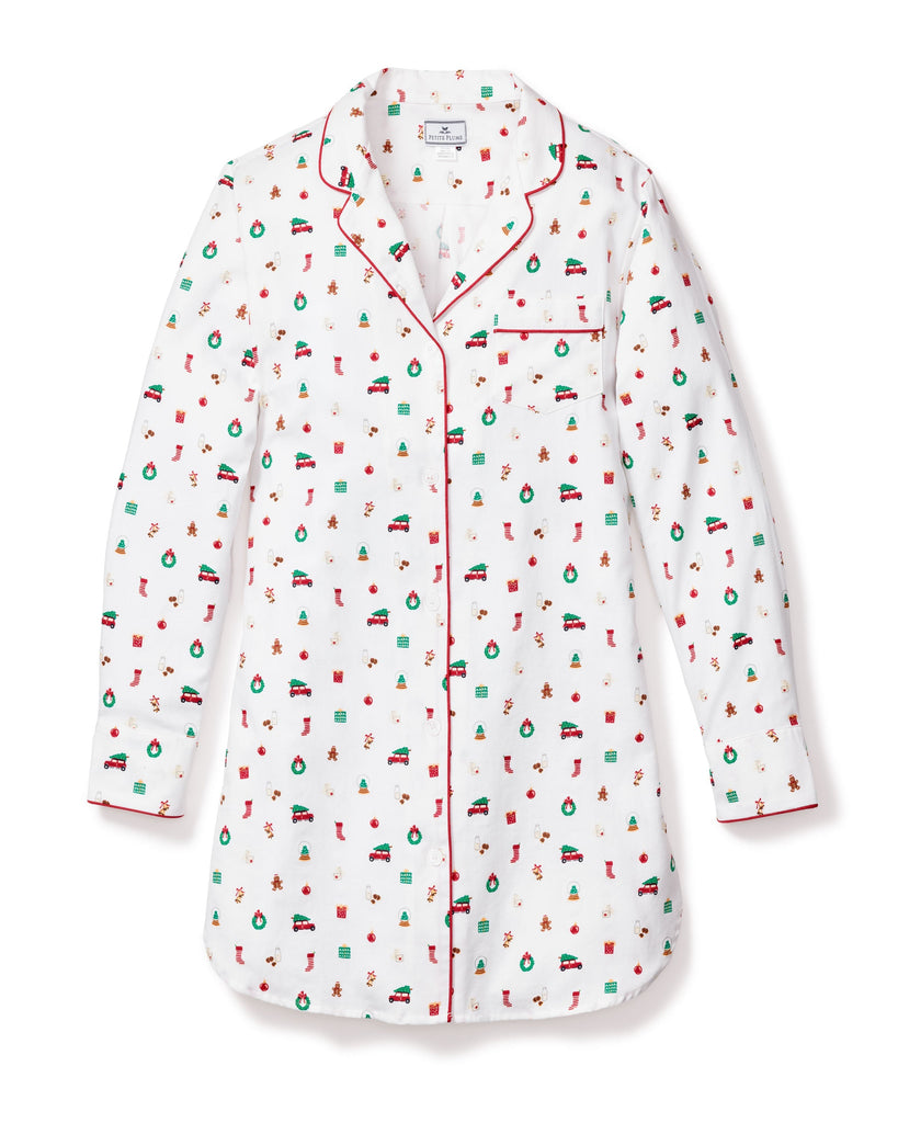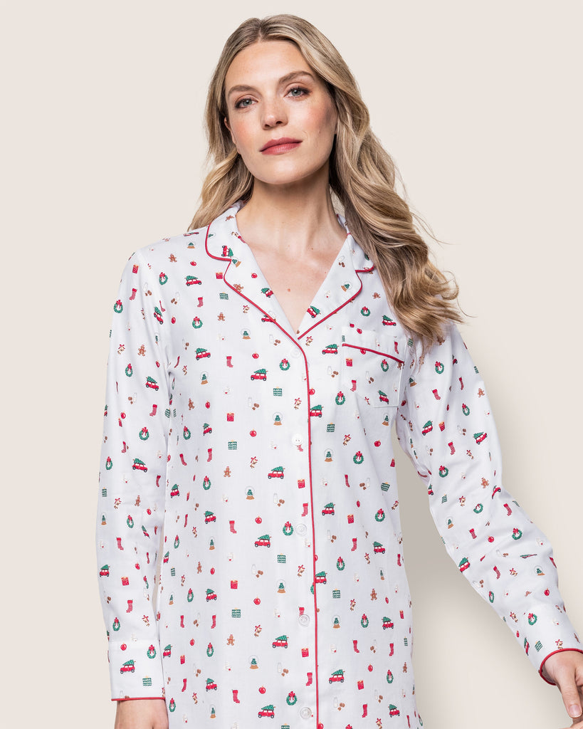 Petite Plume wishes you a “bonne nuit,” and in their luxury sleepwear, it’s hard not to oblige. Crafted from the finest quality 100% cotton, and brushed for added softness, the Women’s Twill Nightshirt in Winter Nostalgia embraces the whimsy of the holidays with cherished emblems: Christmas bells, a wreath, stockings and presents—just to name a few. Accented with a red piping, it’s a delightful reminder of everything that makes the season special.