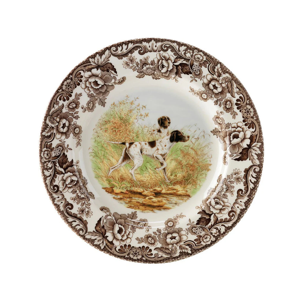 Founded by Josiah Spode in 1770, Spode has been producing the finest ceramics and celebrated designs in Stoke-on-Trent, England for 250 years. Spode is the authority on great British style bringing heritage style to modern day life. Woodland’s designs are rooted in the traditions of hunting for game and its elaborate presentation on the table. Central to the charm of the pattern are the striking studies of different animals framed by the British Flowers border which dates back to 1831. This Woodland Dogs Salad Plate features a Pointer. Casually formal for every day living, this set is dishwasher and microwave safe.