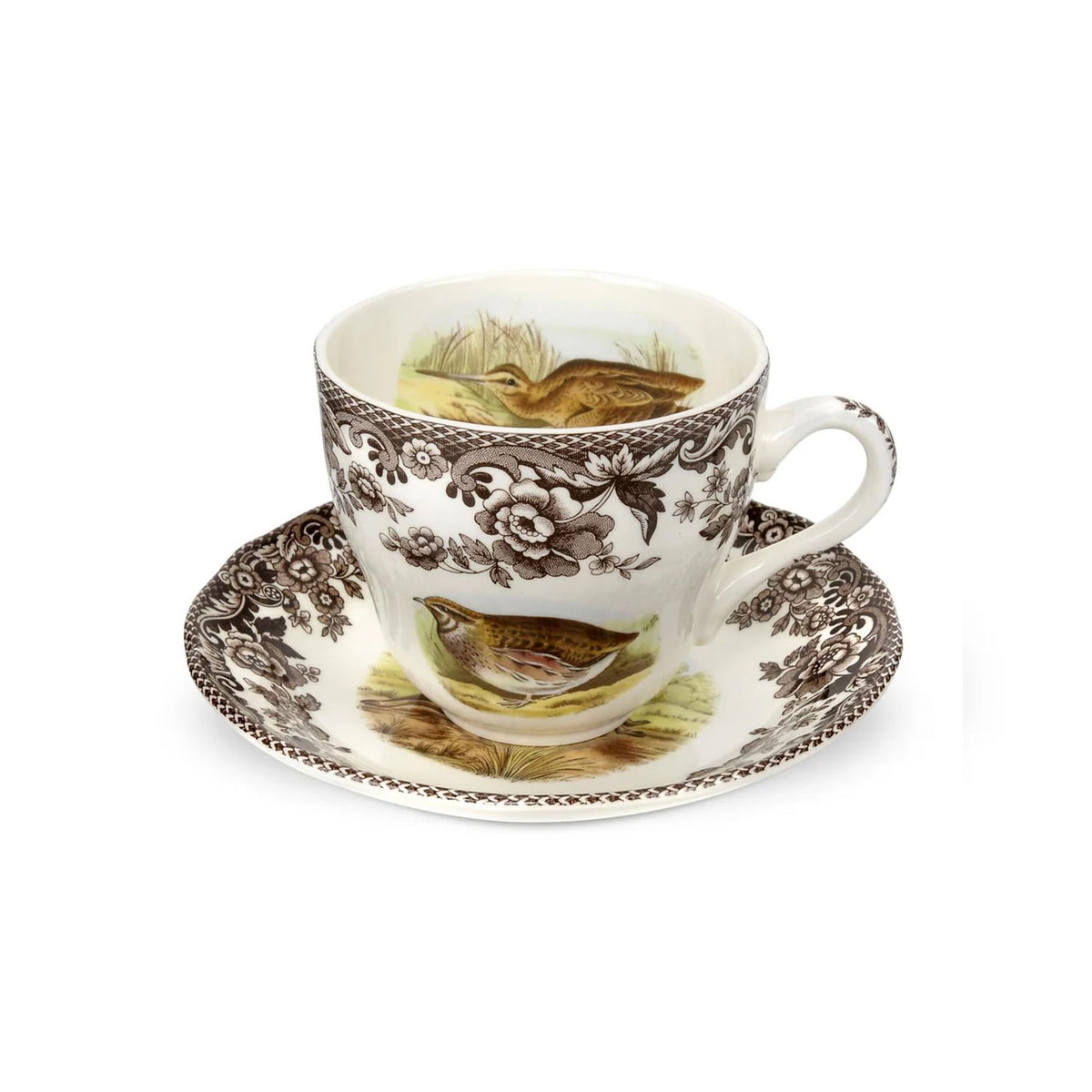 Founded by Josiah Spode in 1770, Spode has been producing the finest ceramics and celebrated designs in Stoke-on-Trent, England for 250 years. Spode is the authority on great British style bringing heritage style to modern day life. Woodland’s designs are rooted in the traditions of hunting for game and its elaborate presentation on the table. Central to the charm of the pattern are the striking studies of different animals framed by the British Flowers border which dates back to 1831. This Woodland Teacup & Saucer features a Quail, Pheasant, Snipe, & Rabbit. Casually formal for every day living, this set is dishwasher and microwave safe.