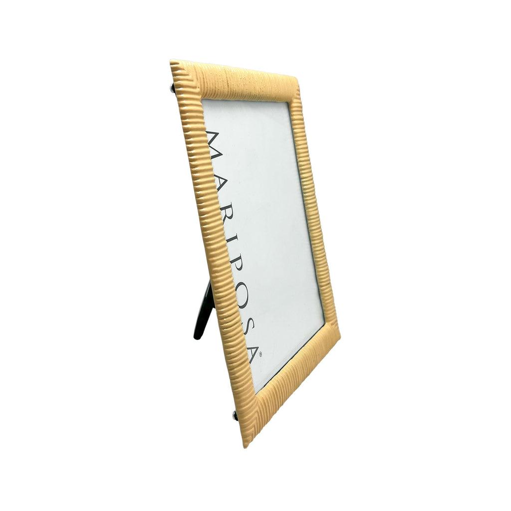 The Mariposa Woven Yellow 5x7 Frame is a beautifully handcrafted piece that brings refined texture and dimension to any display. Made from 100% recycled aluminum, its detailed woven design adds subtle sophistication to your home décor, making it ideal for personal use or gifting. Each frame comes beautifully boxed in a Mariposa Gift Box, making presentation effortless.