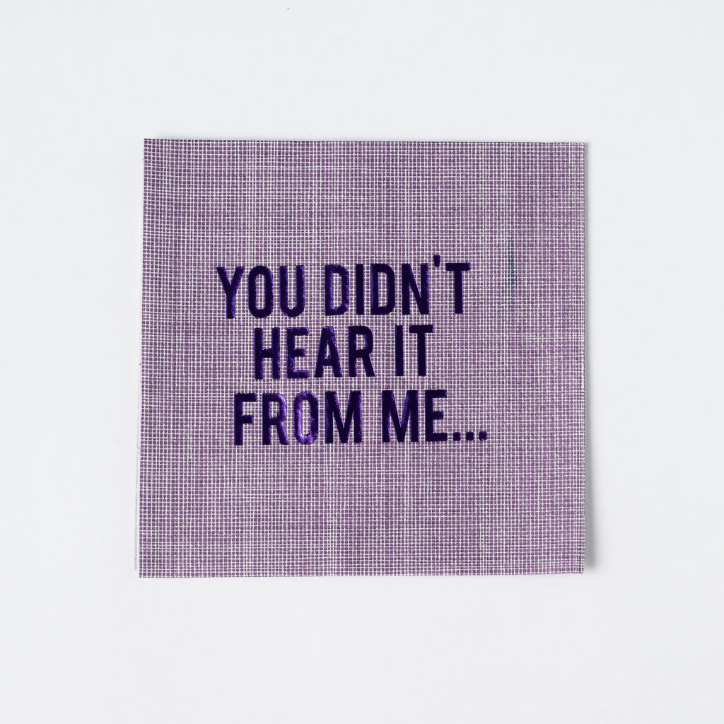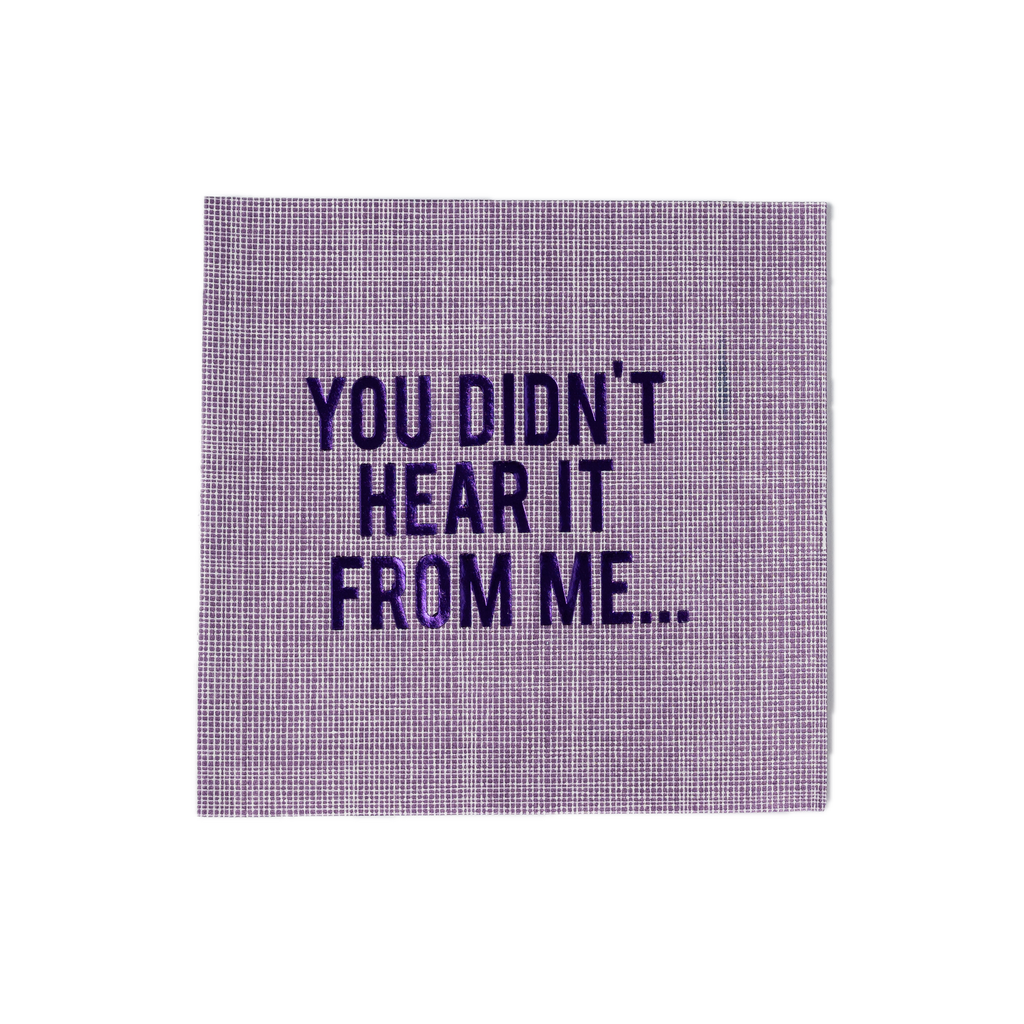 For the friend who always knows the good gossip, the You Didn’t Hear It From Me Disposable Napkins, Set of 20, turn every cocktail hour into a lighthearted confessional. Crafted from premium, linen-texture paper, these purple napkins with shiny foil lettering strike the ideal balance between playful and polished—made for girls’ nights, dinner parties, and mischievous gifting.