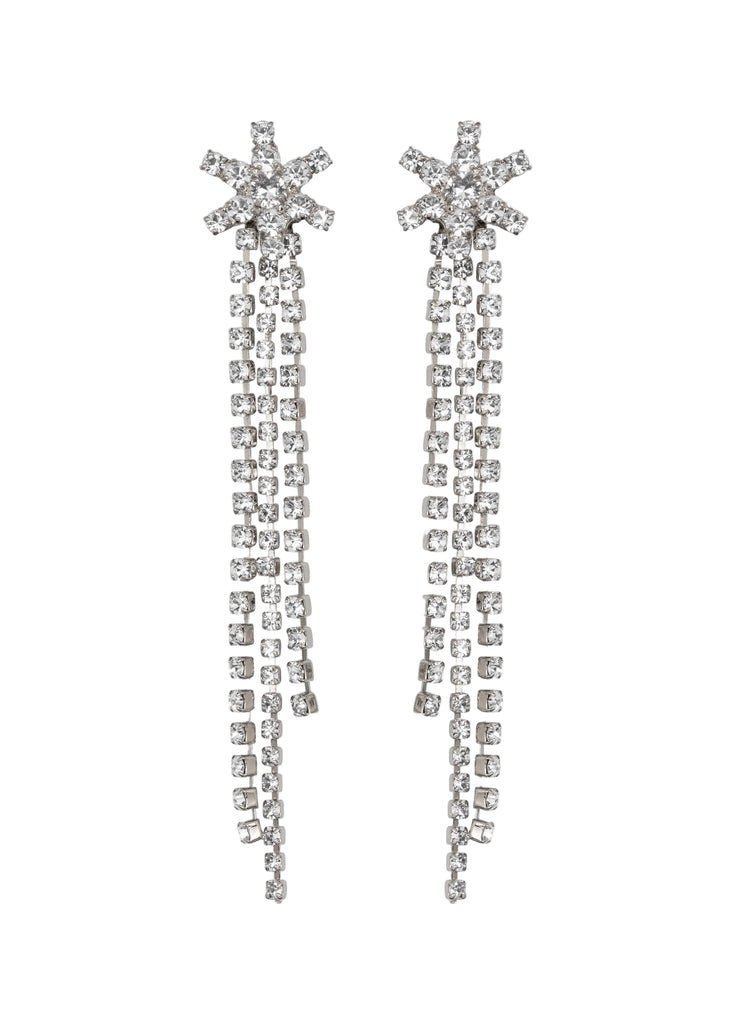 “Everything has a story to tell,” says Jennifer Behr, the founder of her namesake luxury hair accessory brand that has blossomed into one of New York City’s foremost ateliers for jewelry, as well as bridal. In every crystal, pearl, and ribbon, you’ll find the utmost quality and a sense of romance, as each piece reveals a modern interpretation of centuries-old regalia. The Zelda Earrings in Crystal transform Jennifer Behr’s signature celestial motif into a dazzling display of motion and light. Handcrafted in New York with dozens of Austrian crystals, each pair trails delicate crystal fringe that shimmers with every movement—an elegant interpretation of falling stars.